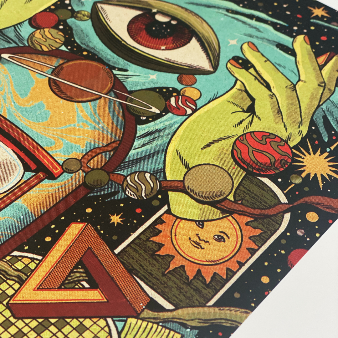 A deep appreciation for both psychedelic art and Brazilian culture drew Rebelution to Pedro Correa’s distinctive work. This truly unique piece of art weaves together concepts of time, wisdom and finding peace in aging, which were among the central lyrical themes from the band’s recent album, “In the Moment”. You’ve never seen anything quite like this.