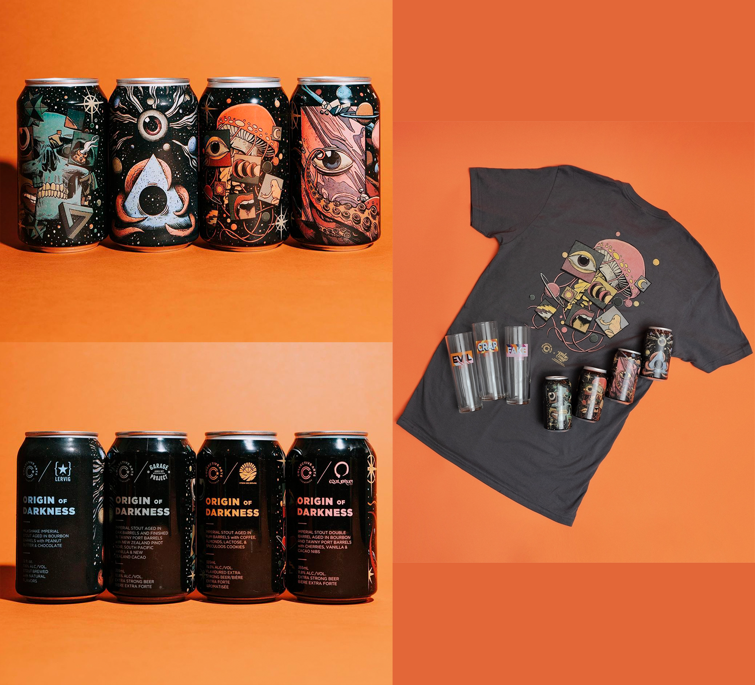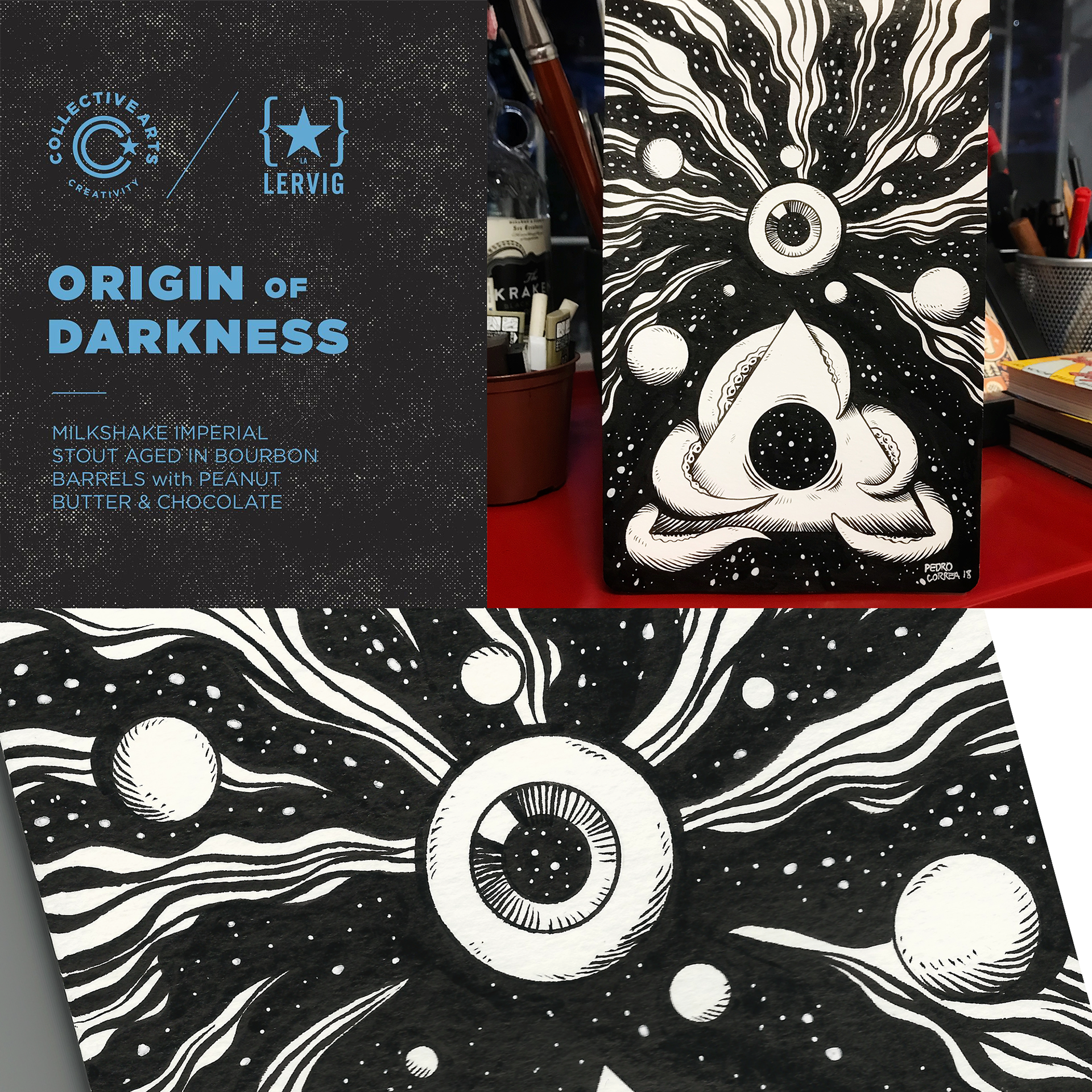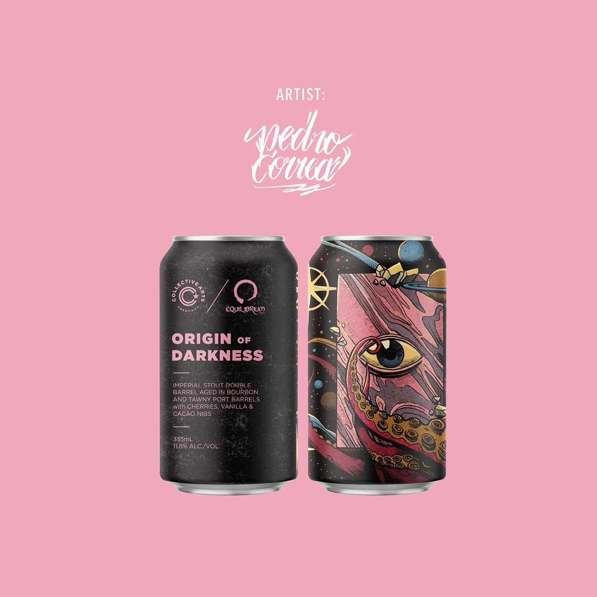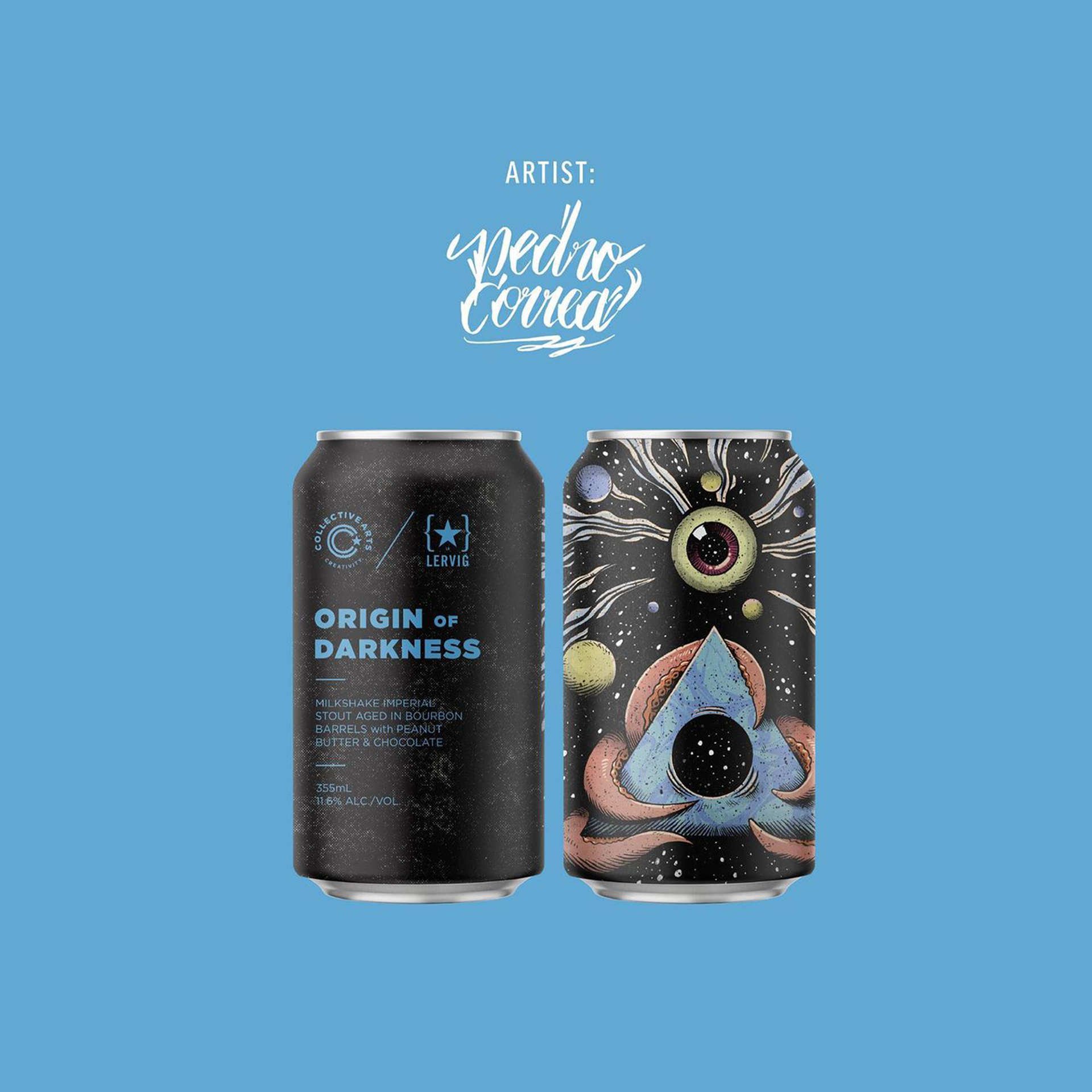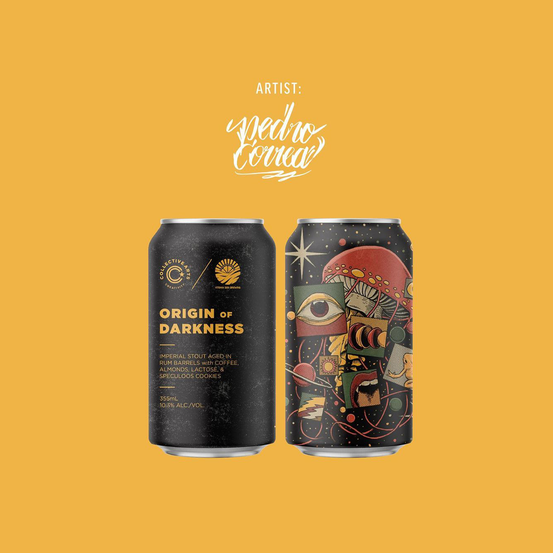 Origin Of Darkness: Series of four Imperial Stout beer cans developed to Collective Arts Brewing
