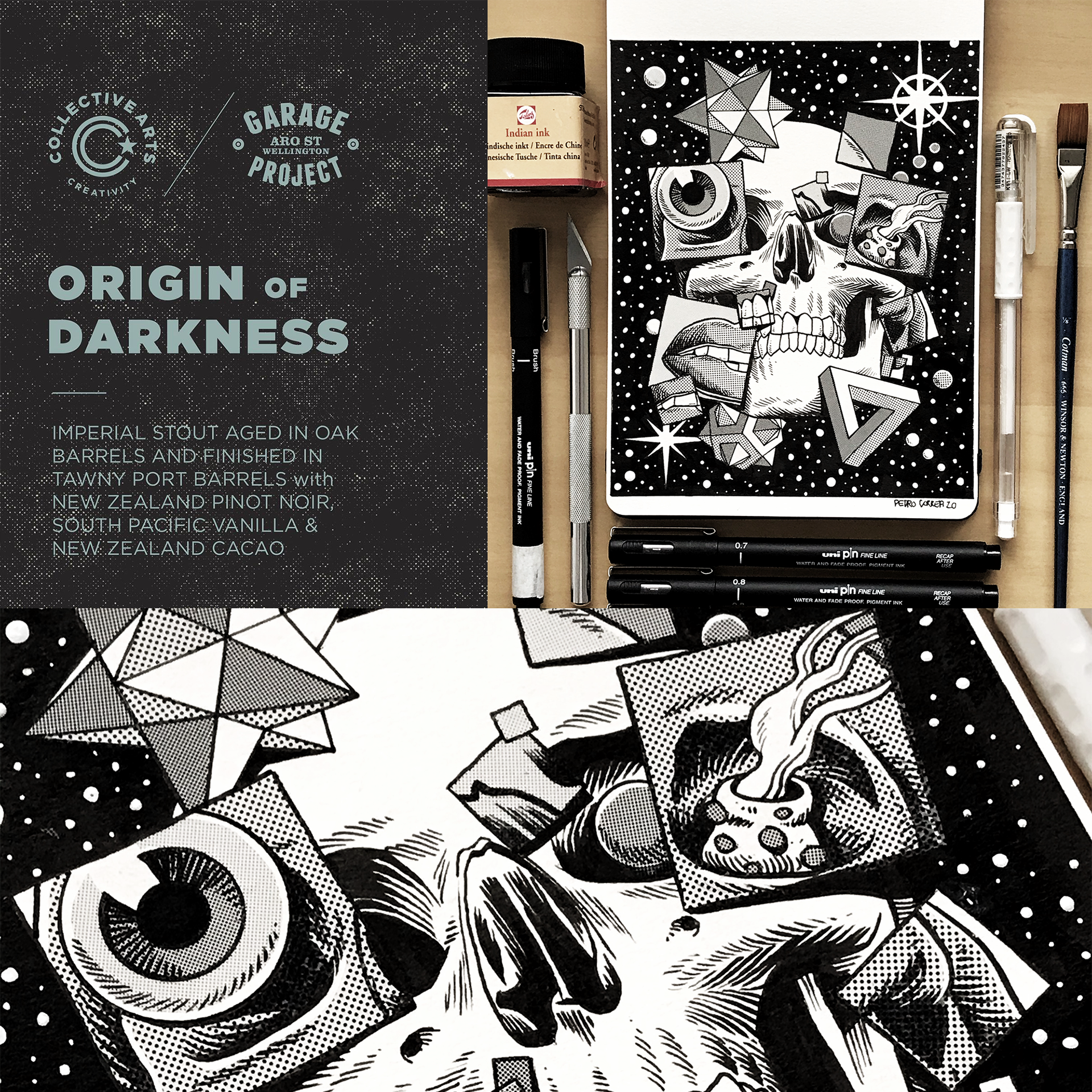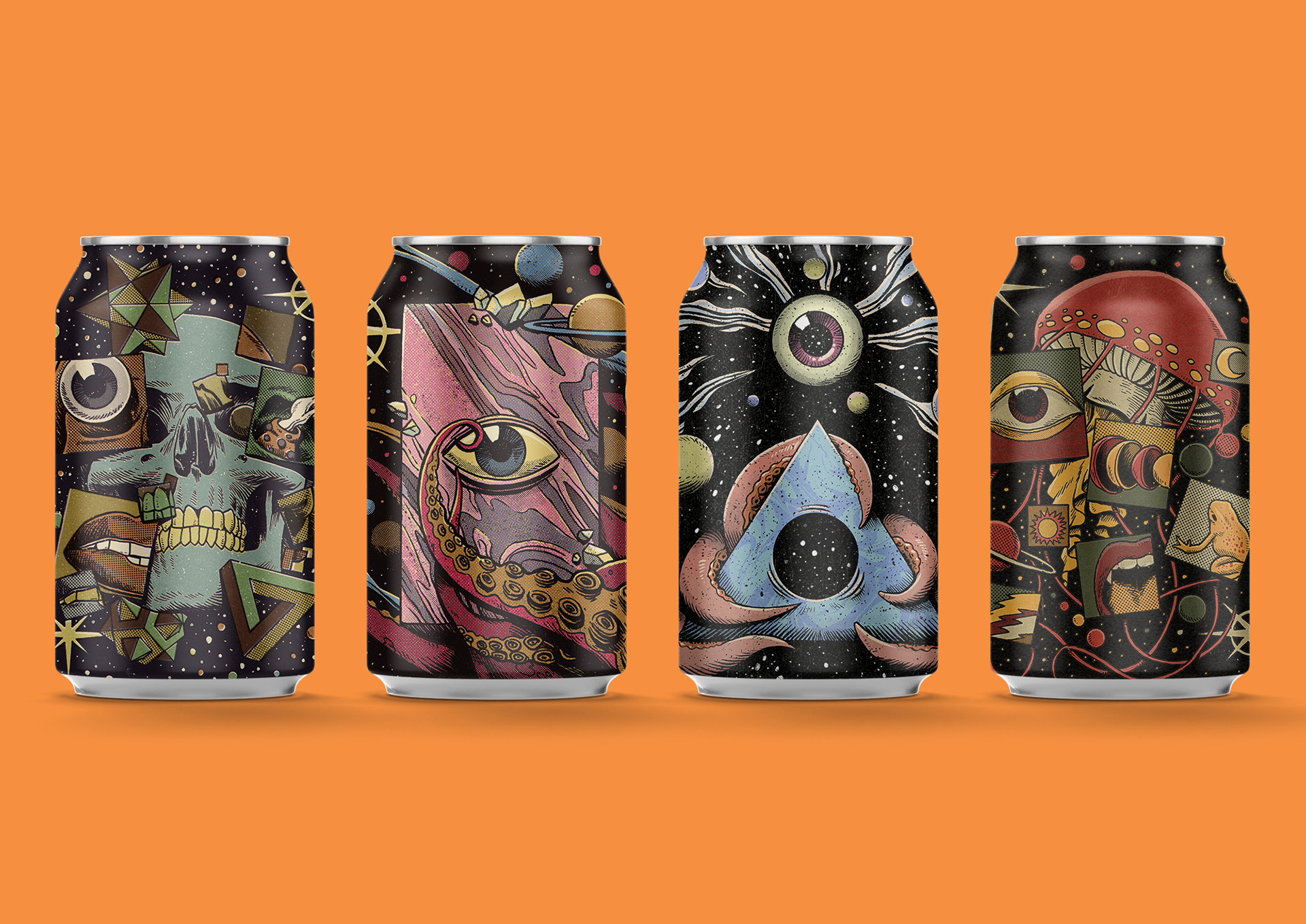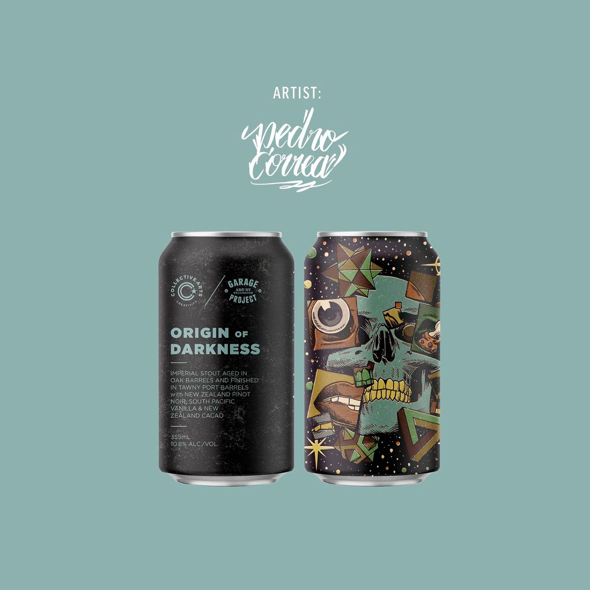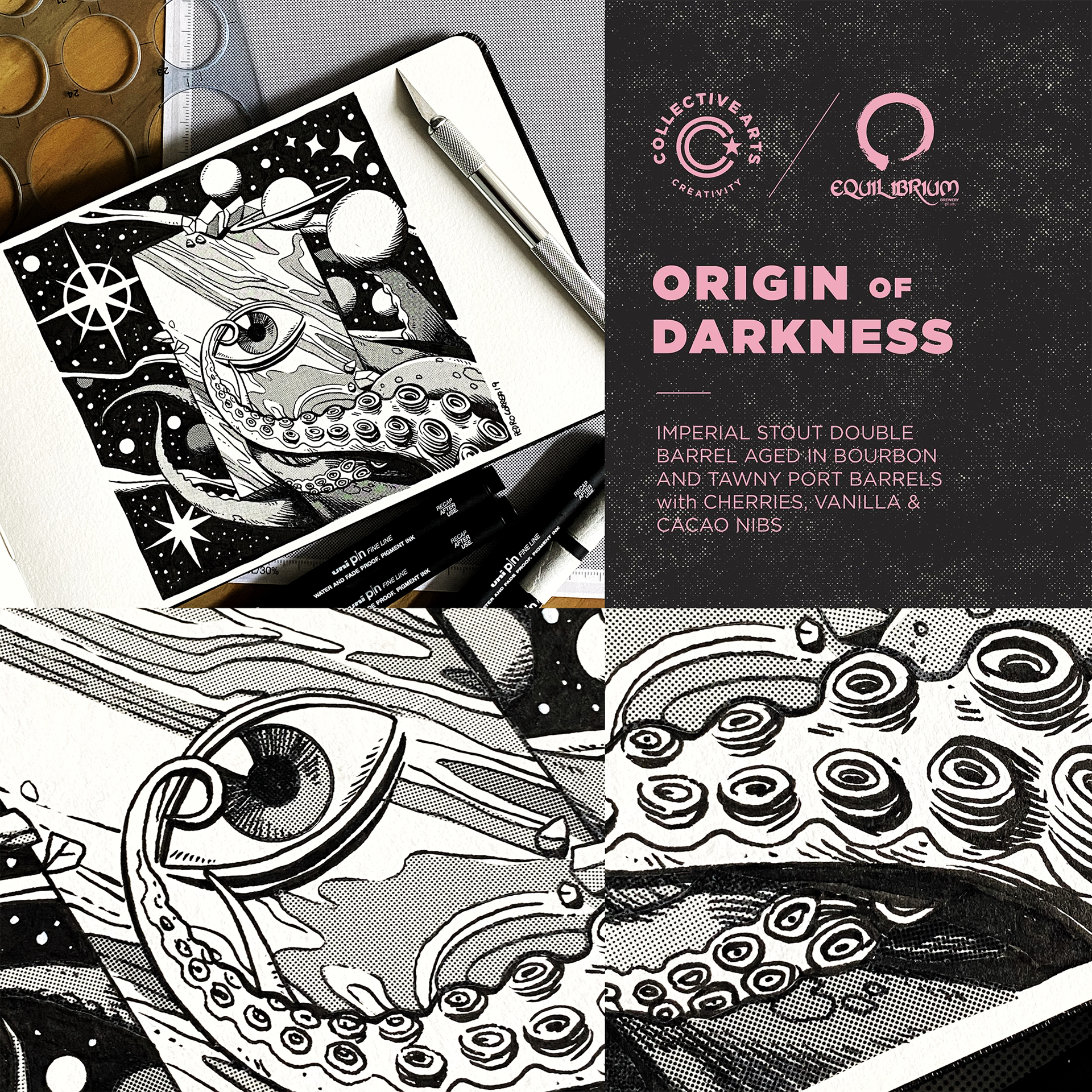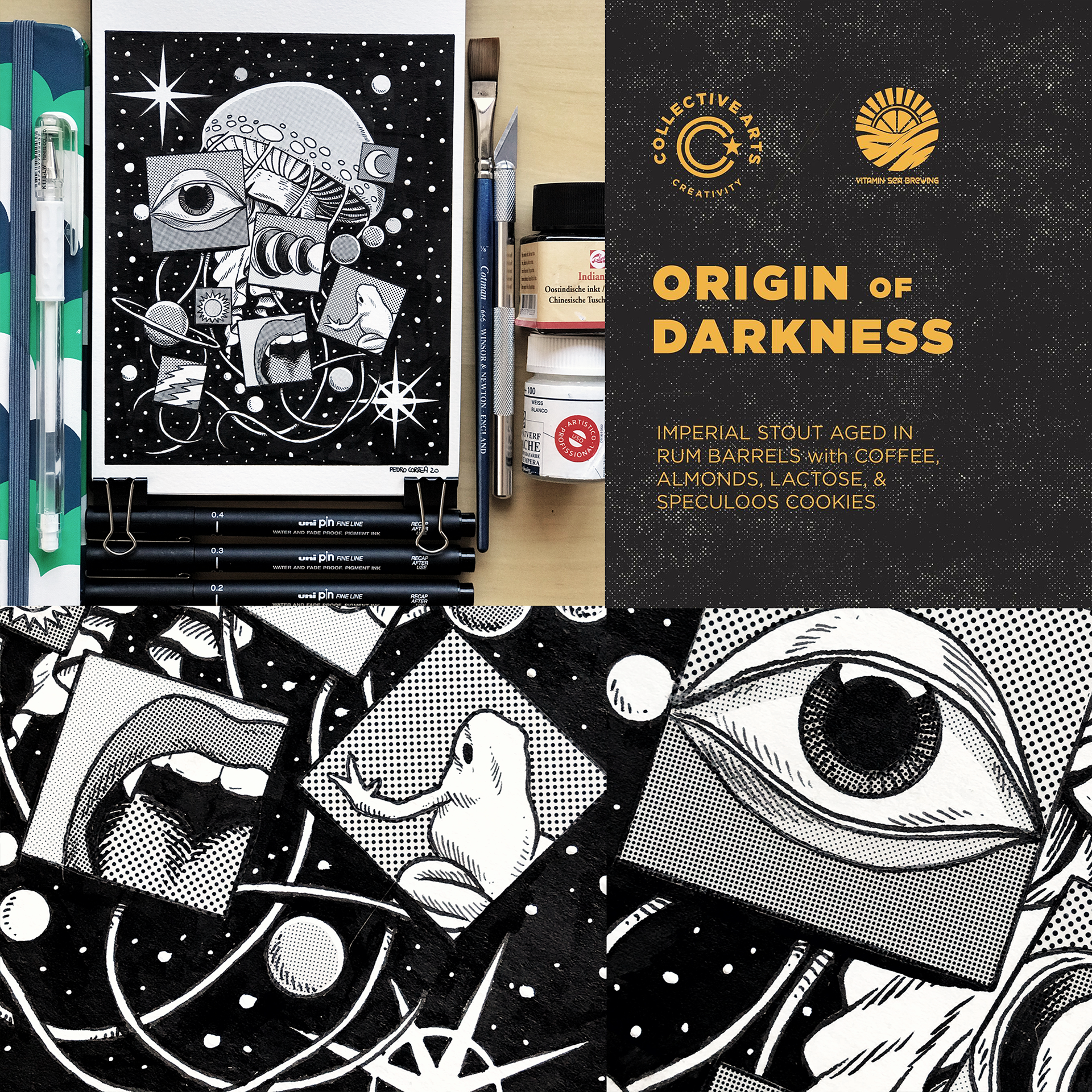 Origin Of Darkness: Series of four Imperial Stout beer cans developed to Collective Arts Brewing
