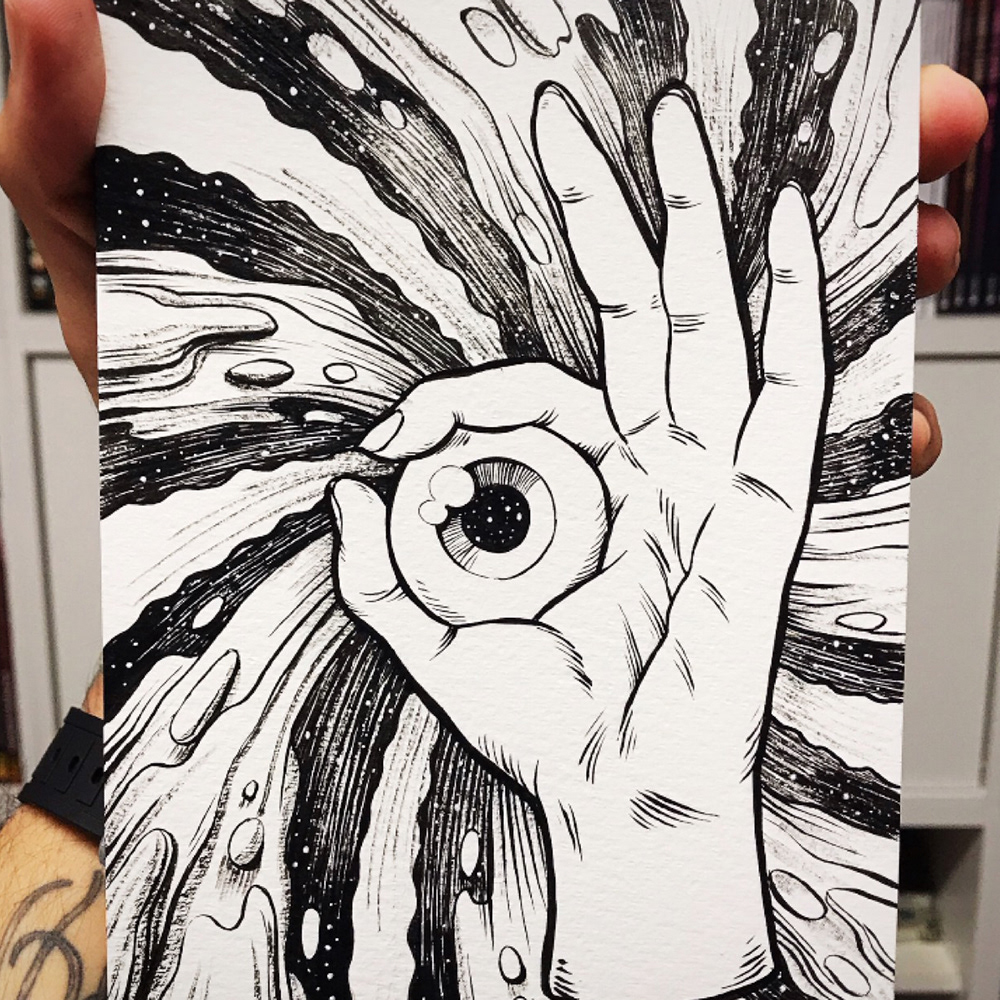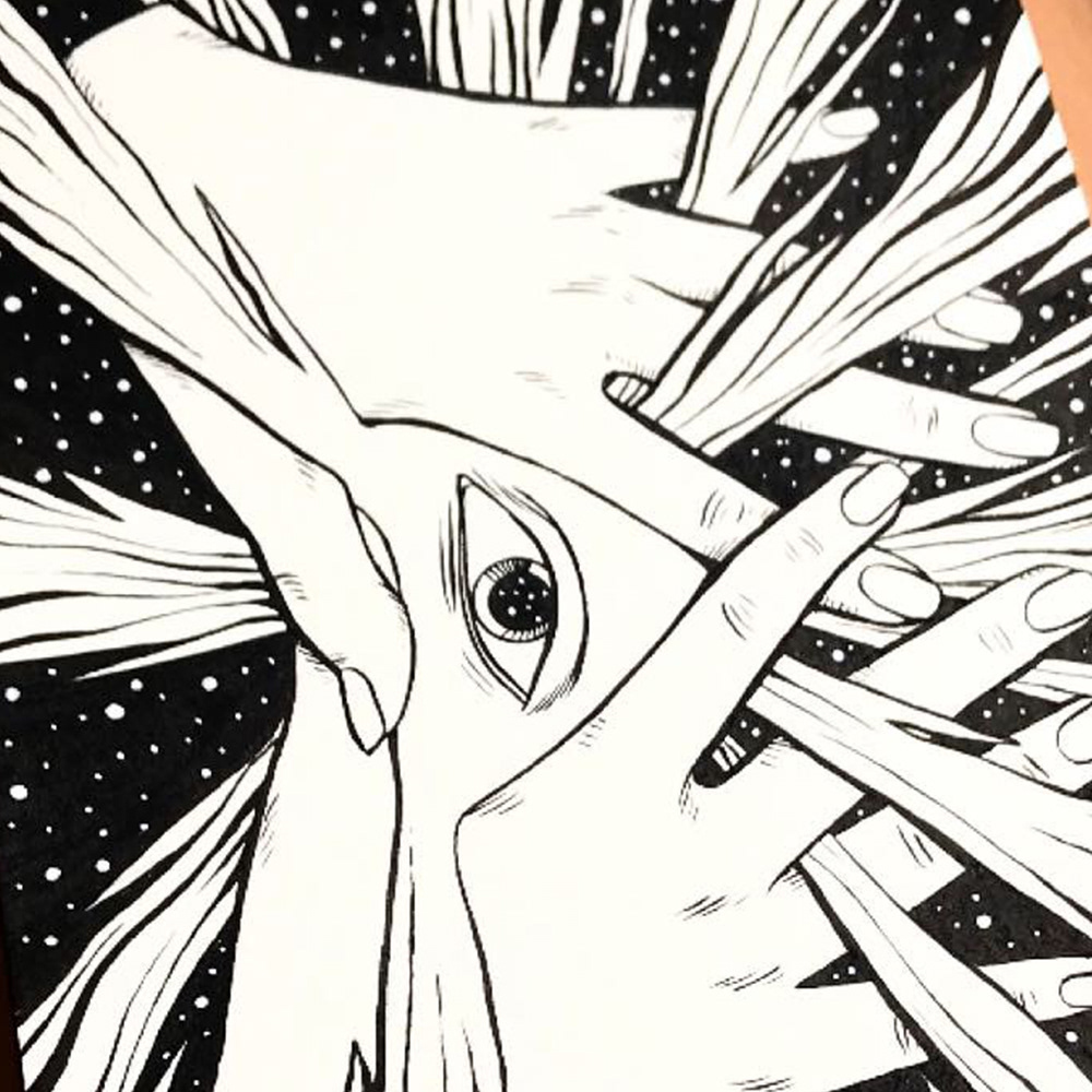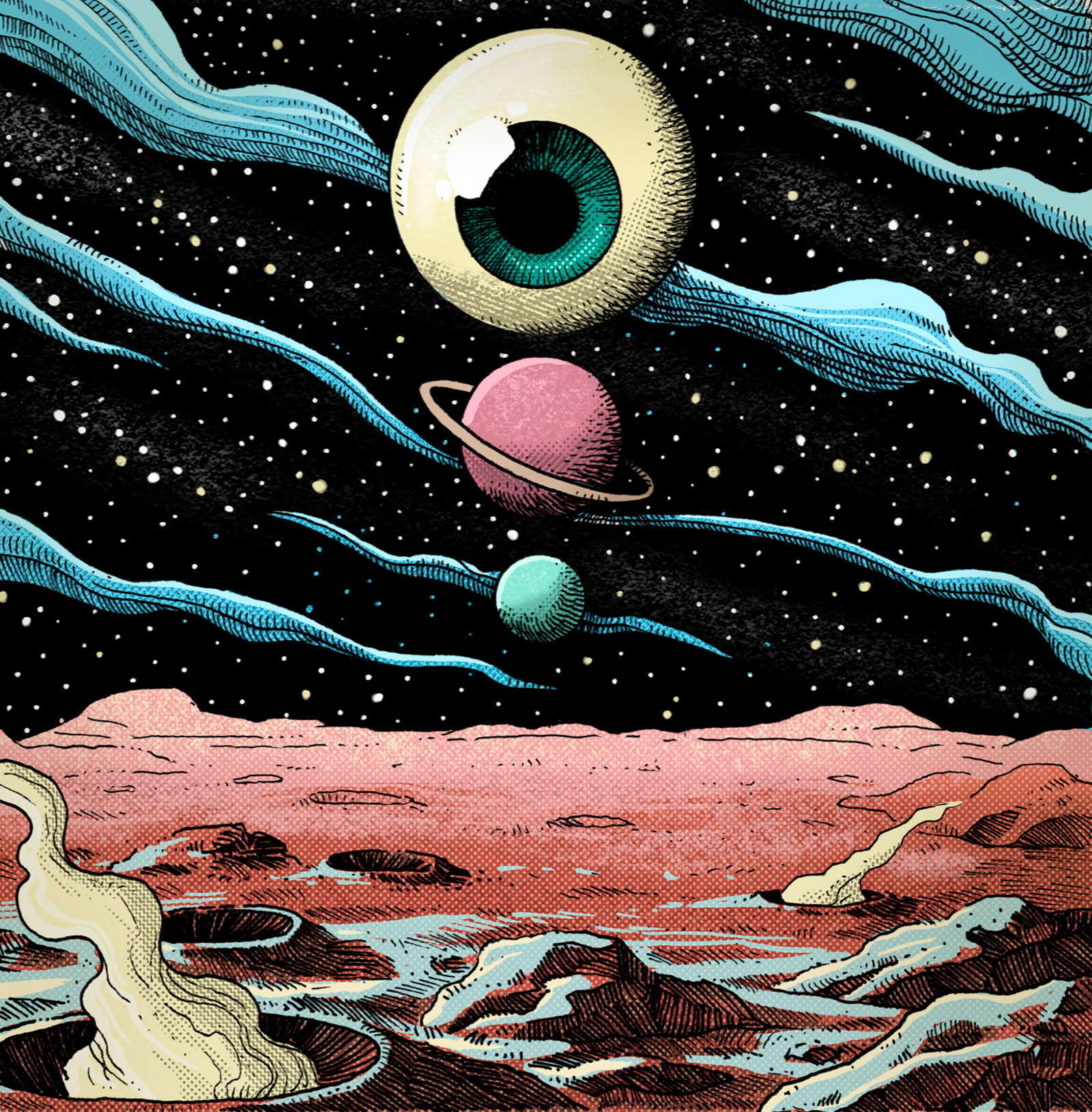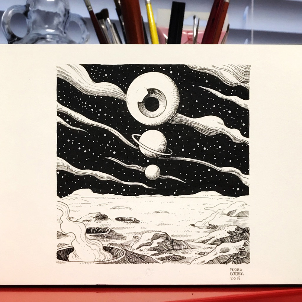 Space: Brush and ink over Moleskine Watercolor album + colors on Photoshp