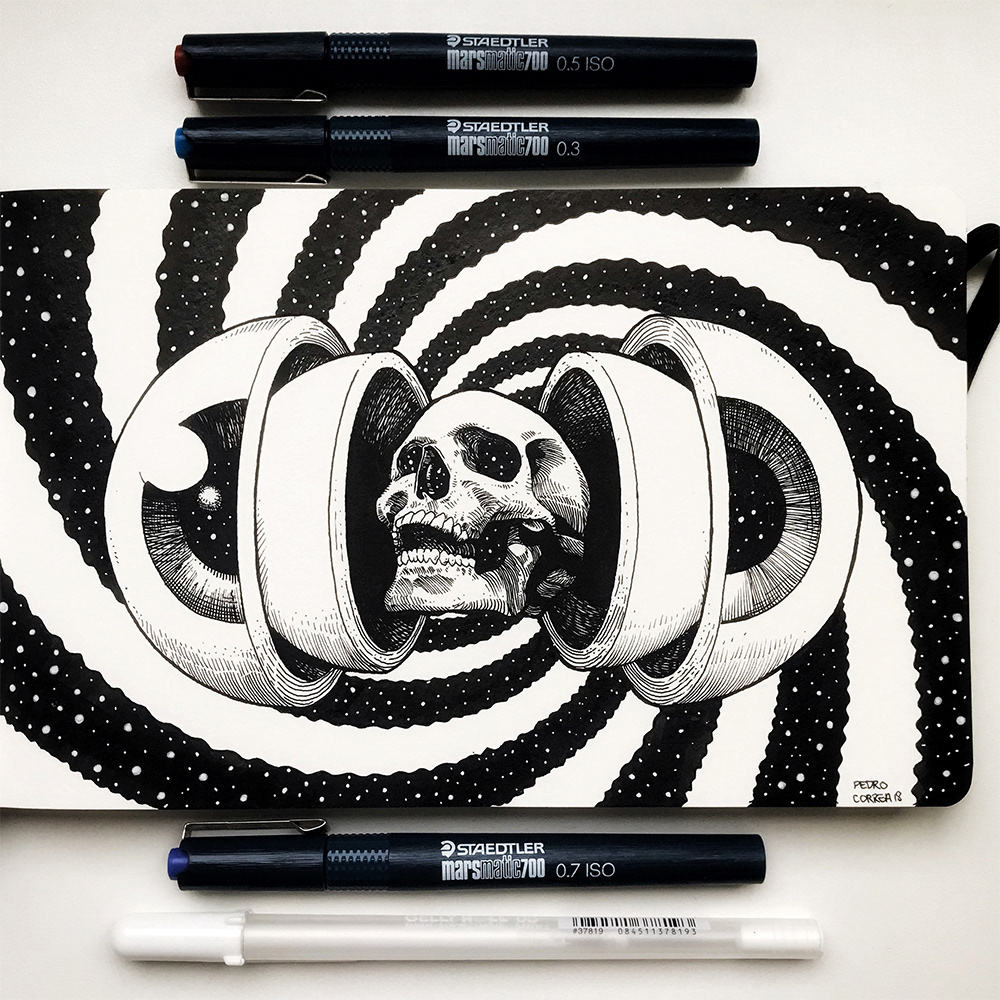 Cosmos: Brush and ink over Moleskine Watercolor album + colors on Procreate app
