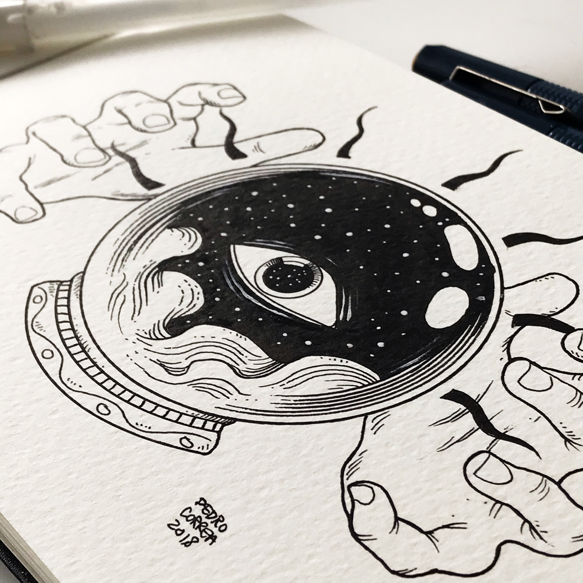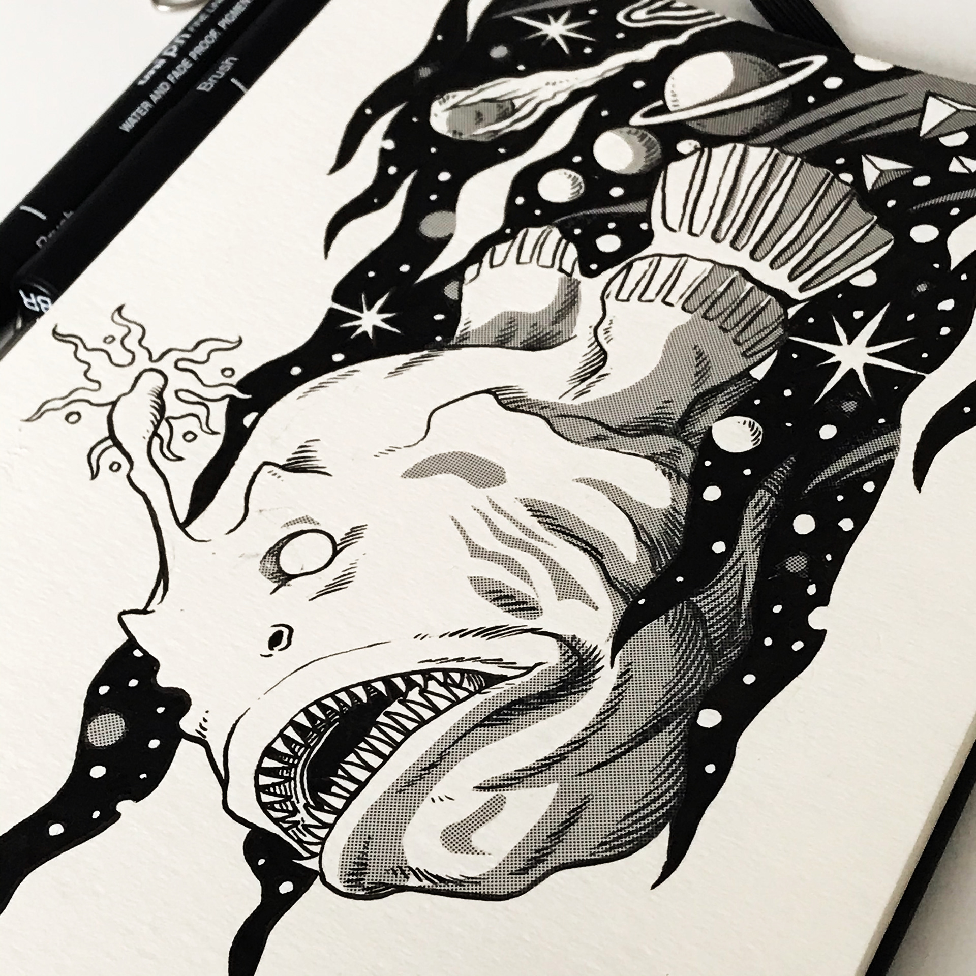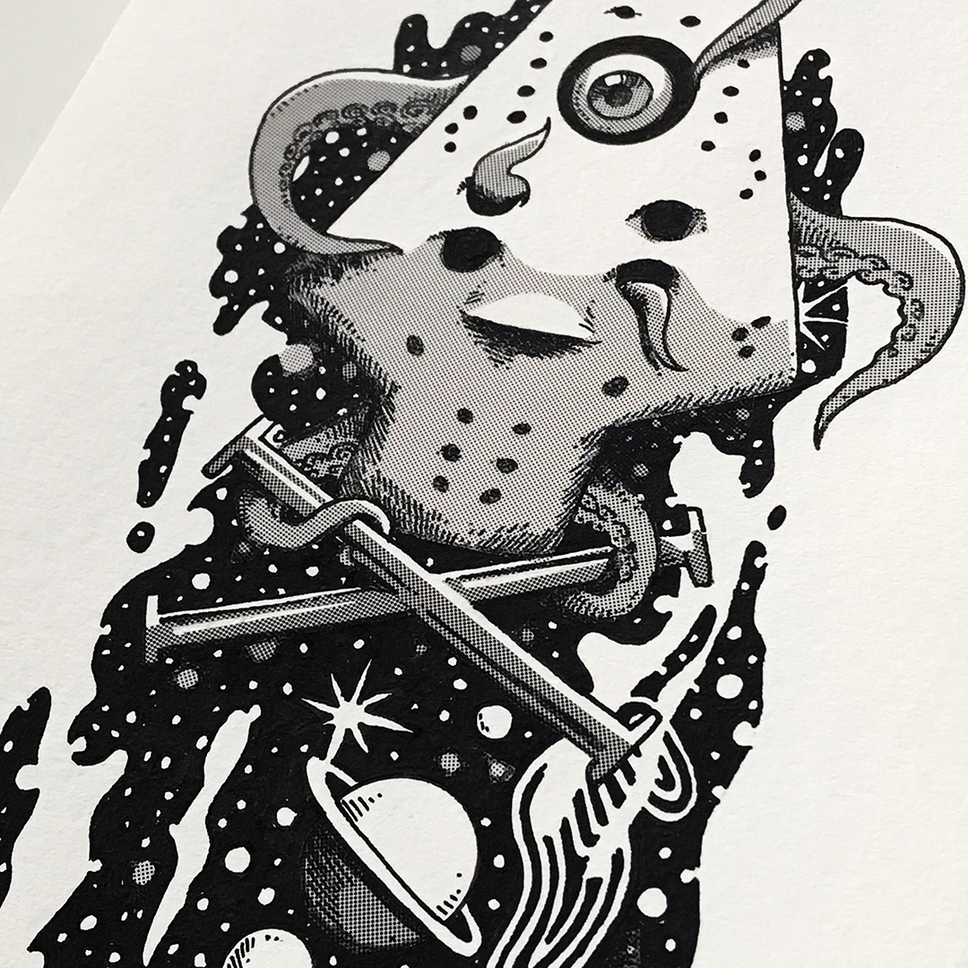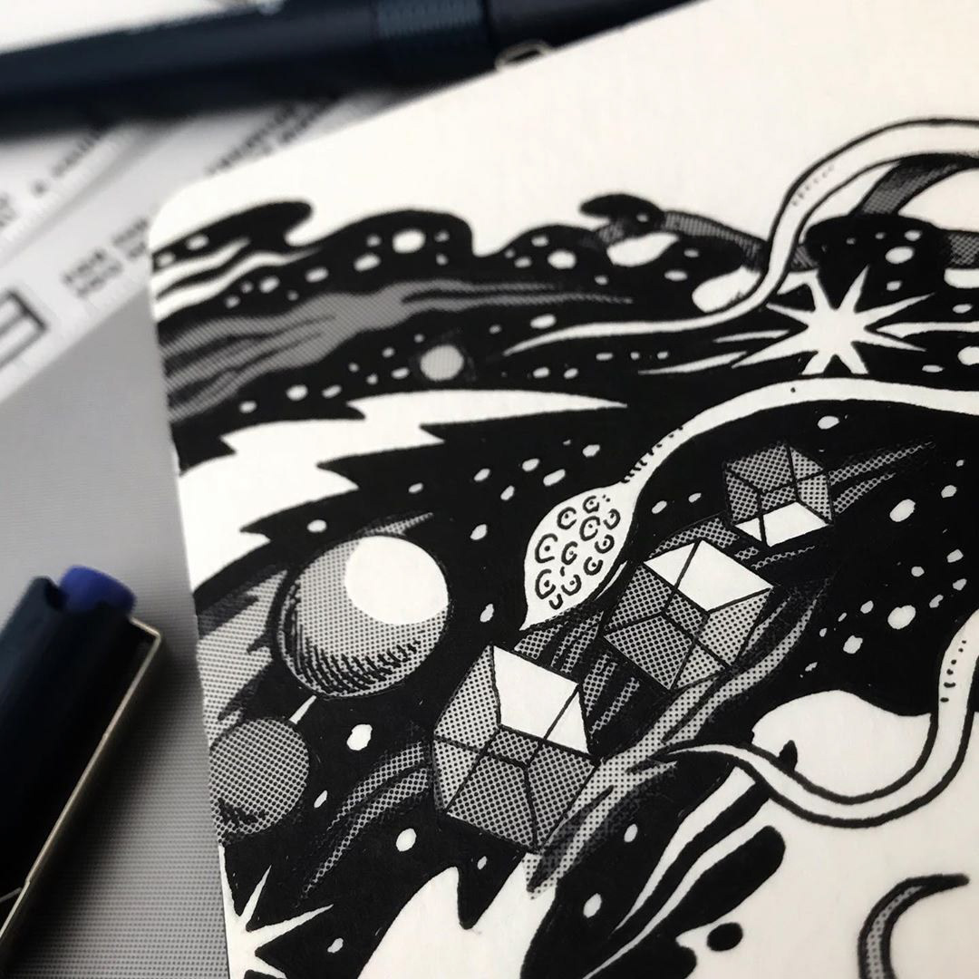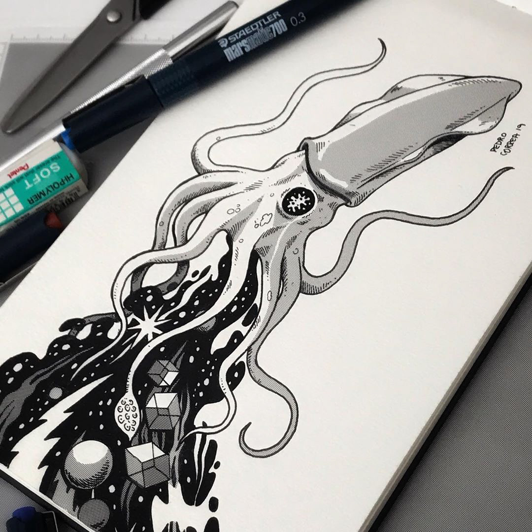 All illustrations made with ink and screentones over Moleskine watercolor album and colored and texturized in Photoshop.