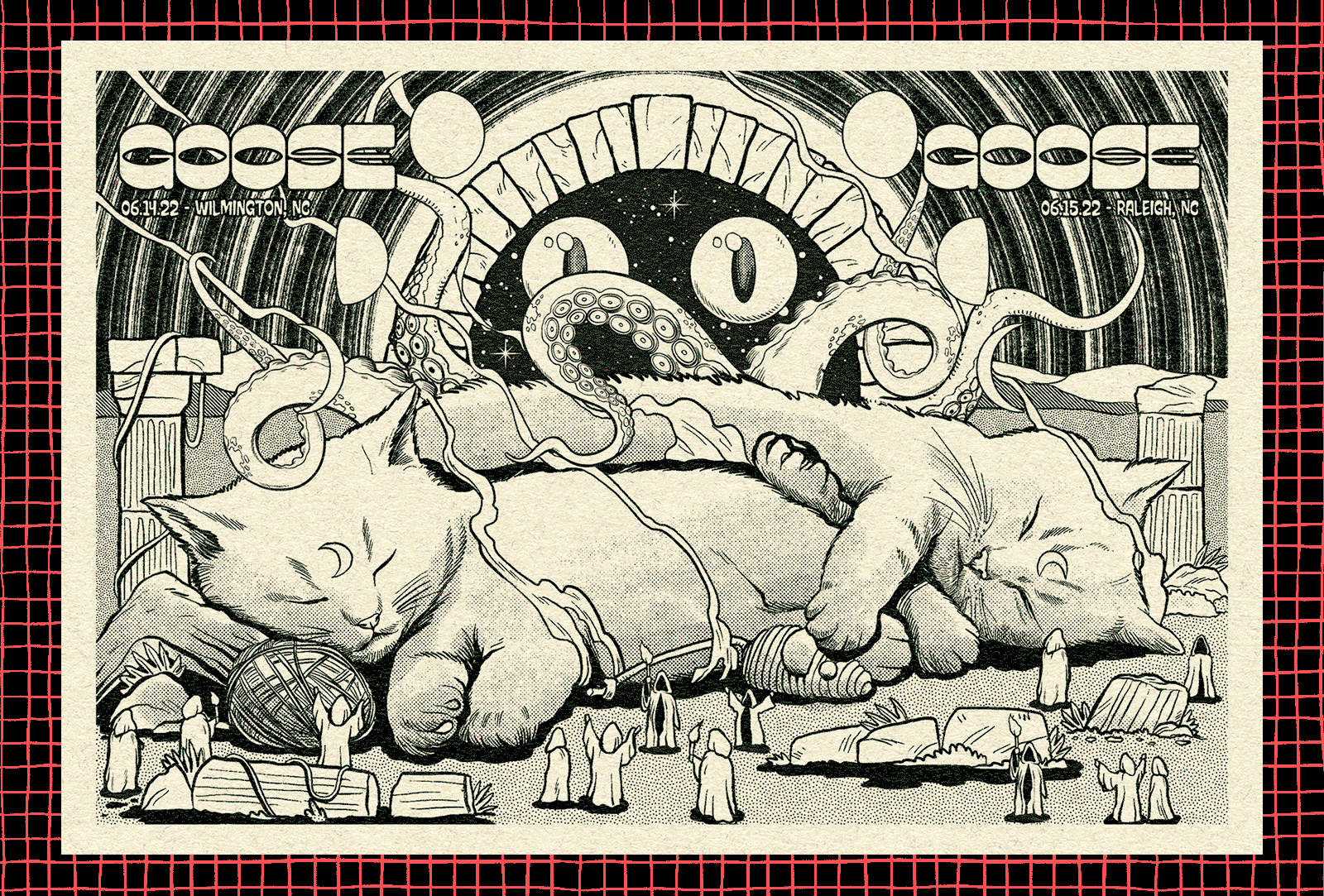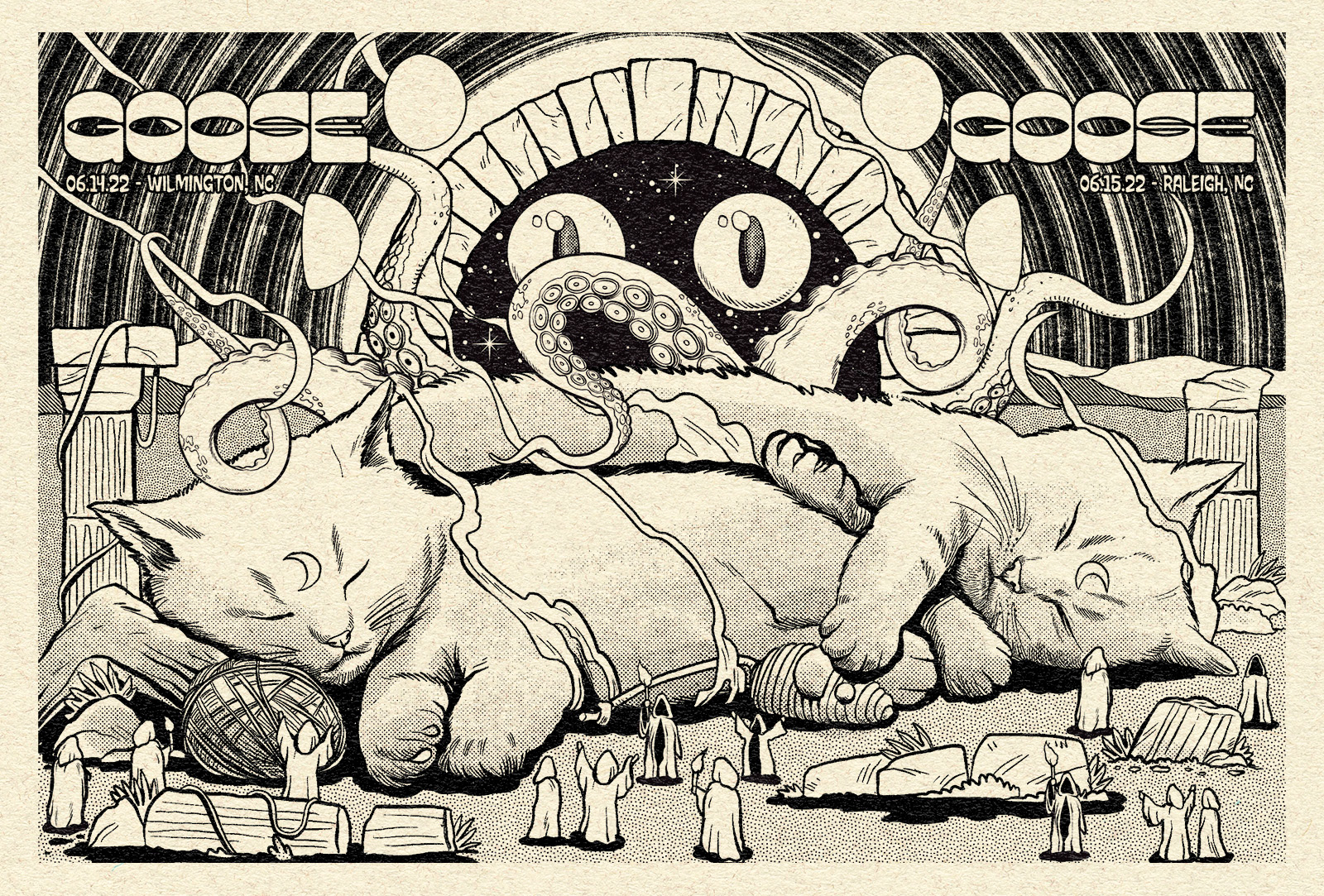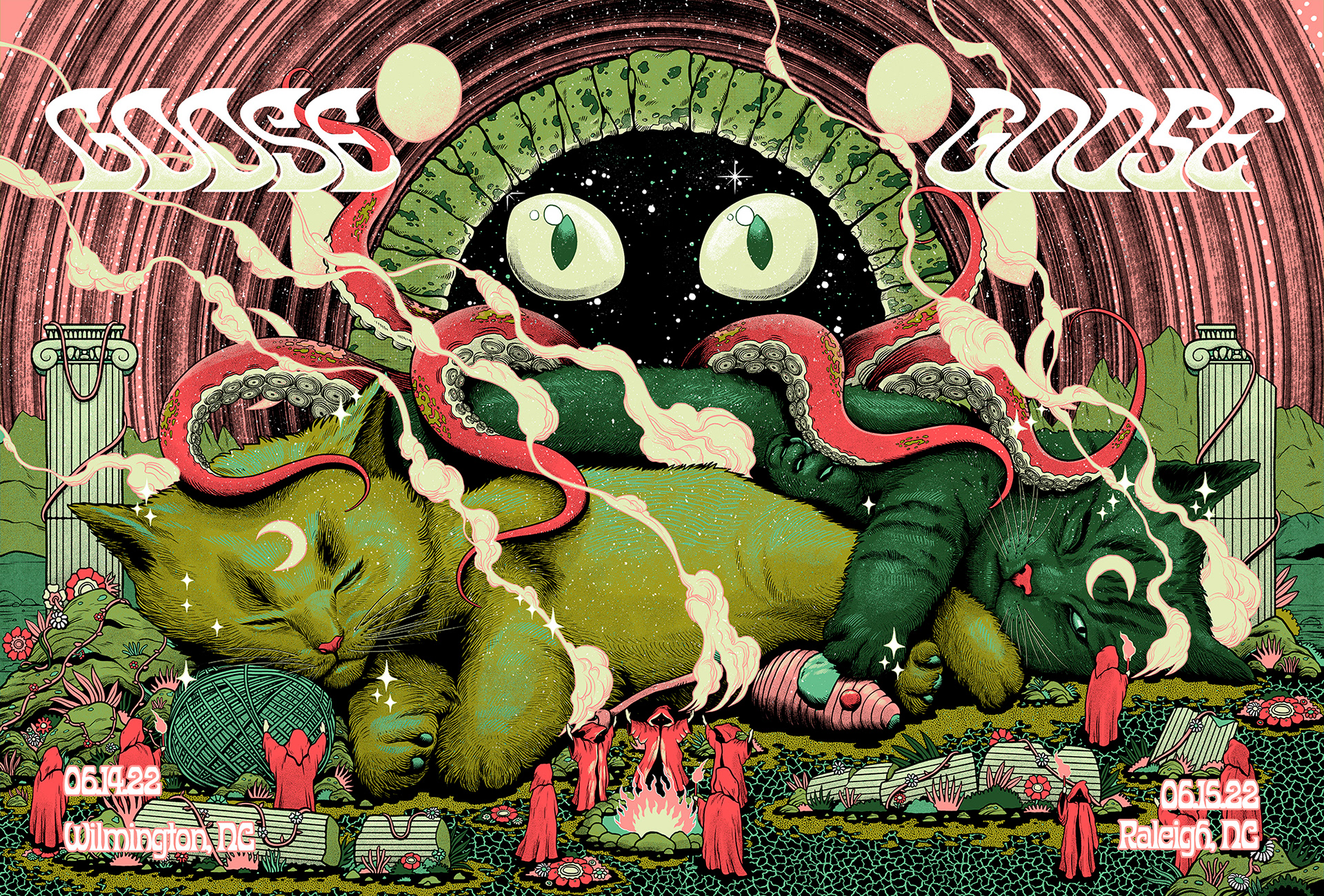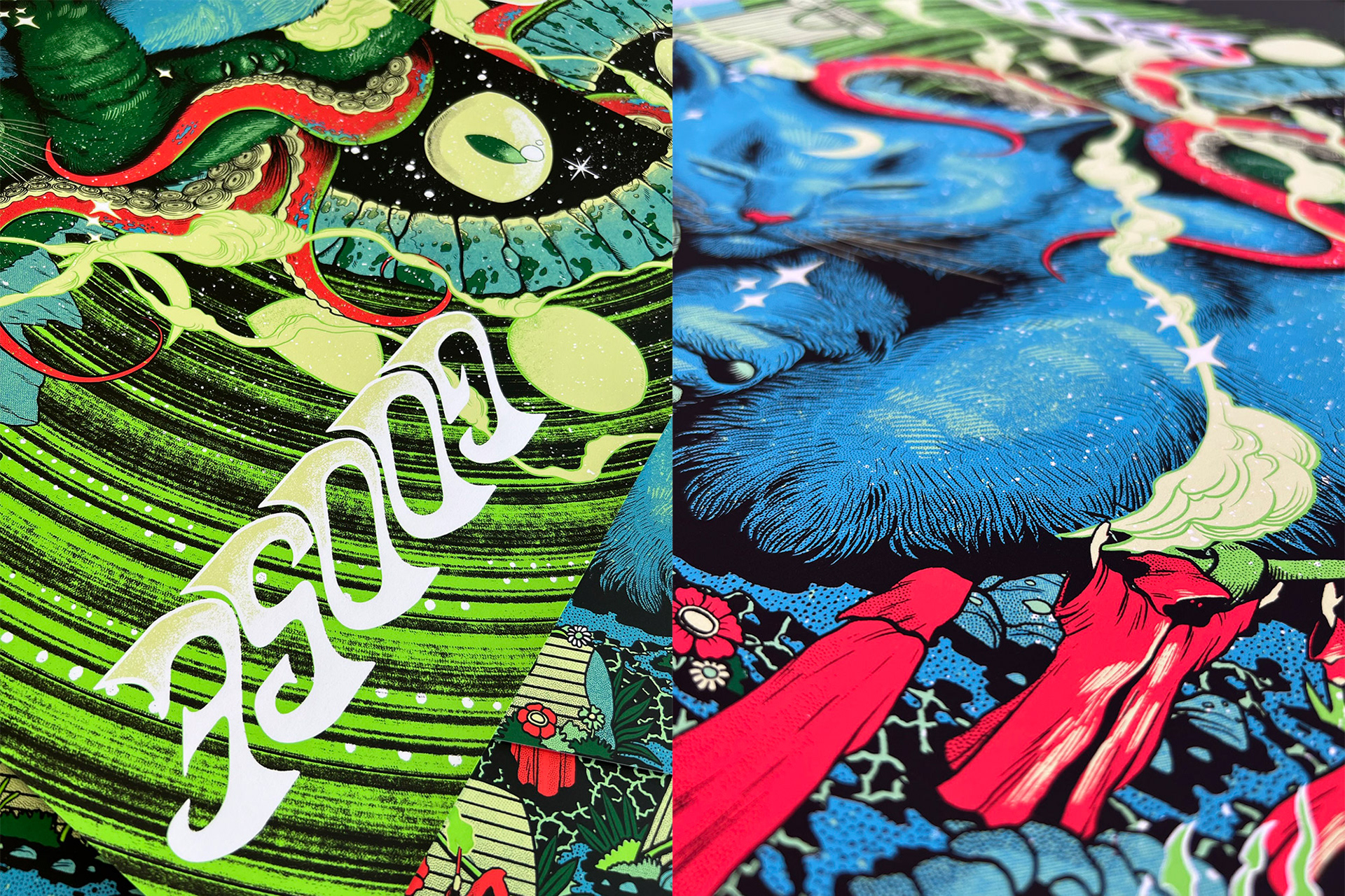 Screen printing diptych posters for Goose concerts in North Carolina