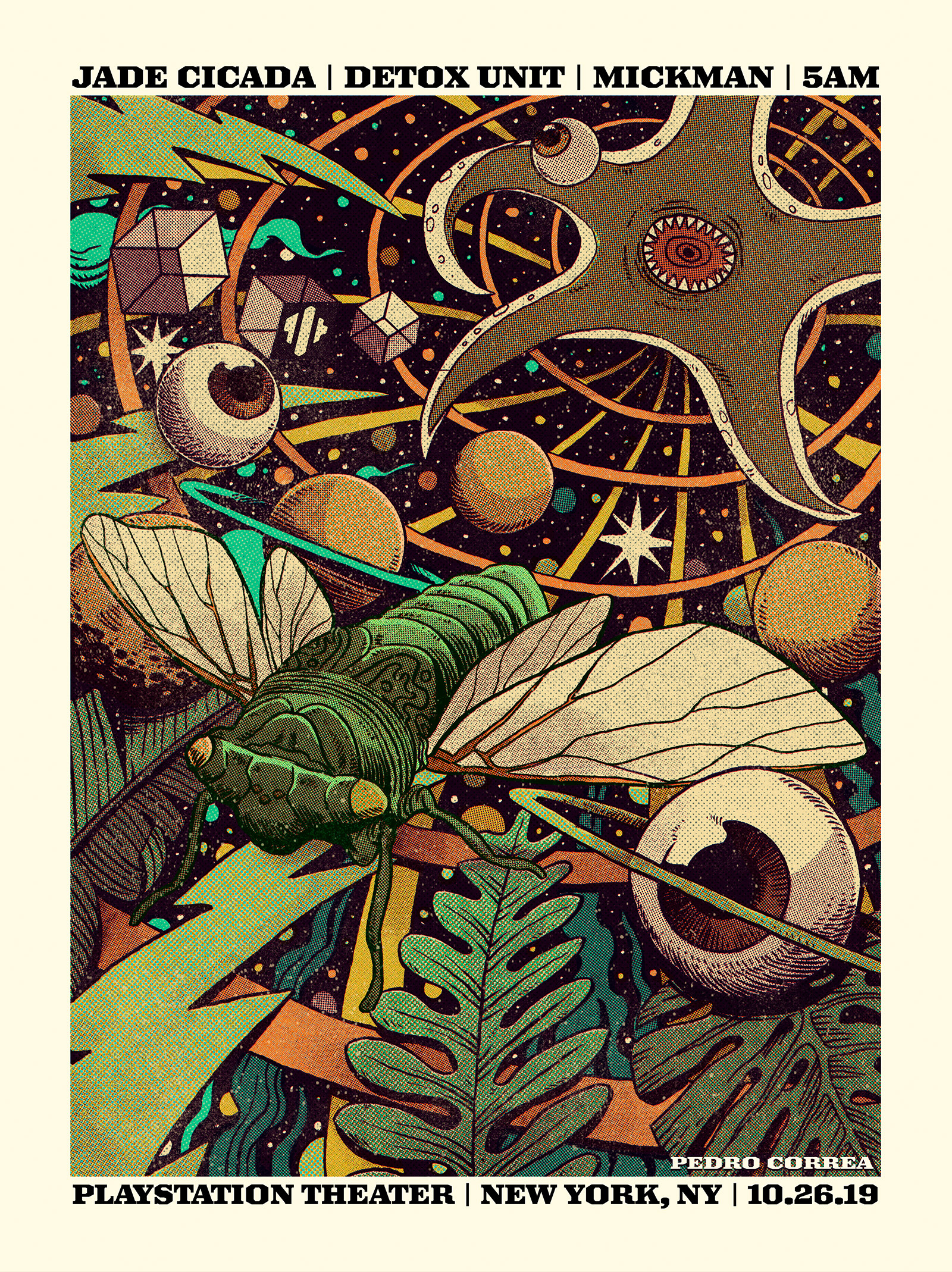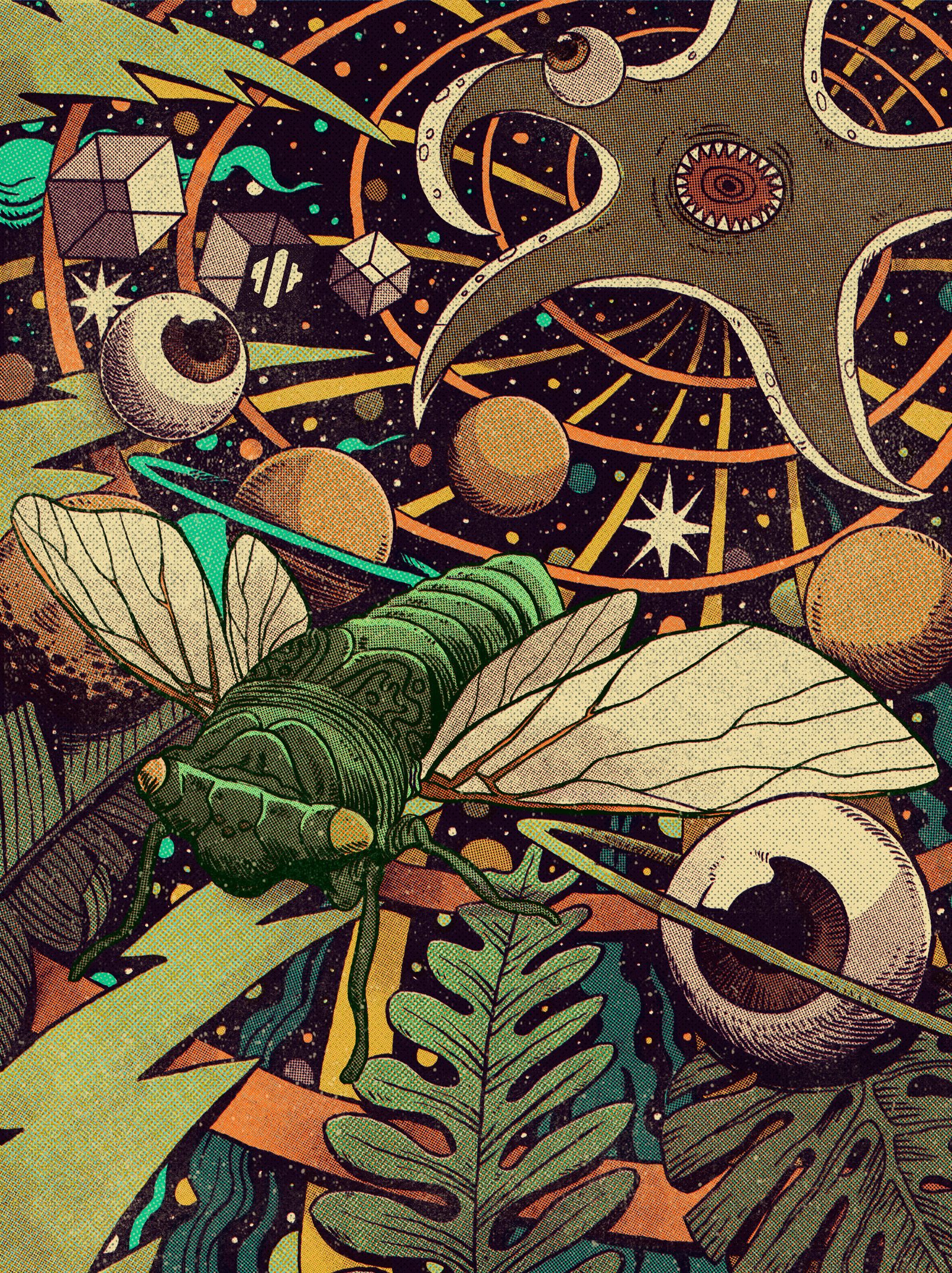 Poster made for Jade Cicada (Skyler Golden), an electronic music producer from Denver, CO. Ink and screentones over watercolor paper and colors and digital textures on Photoshop.