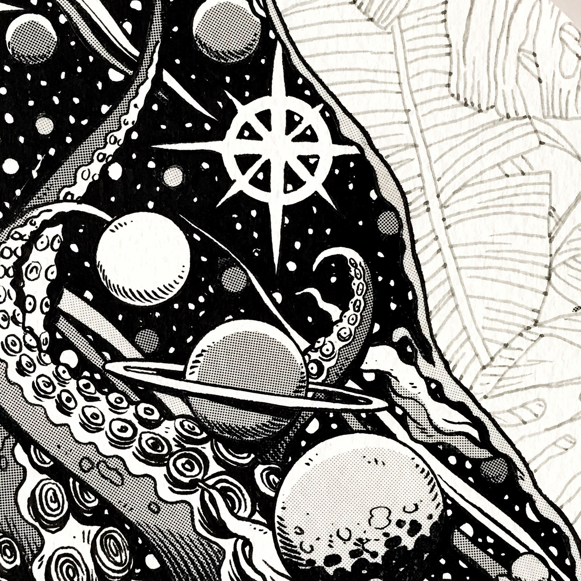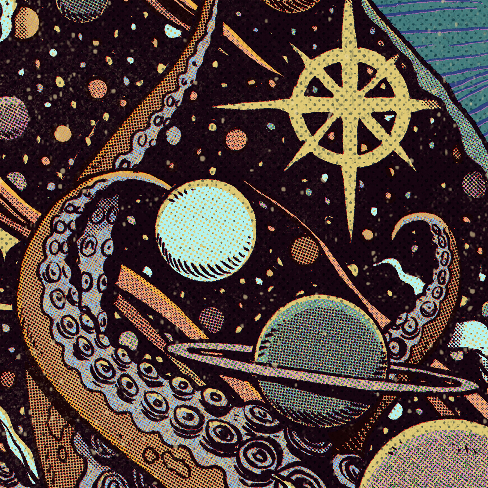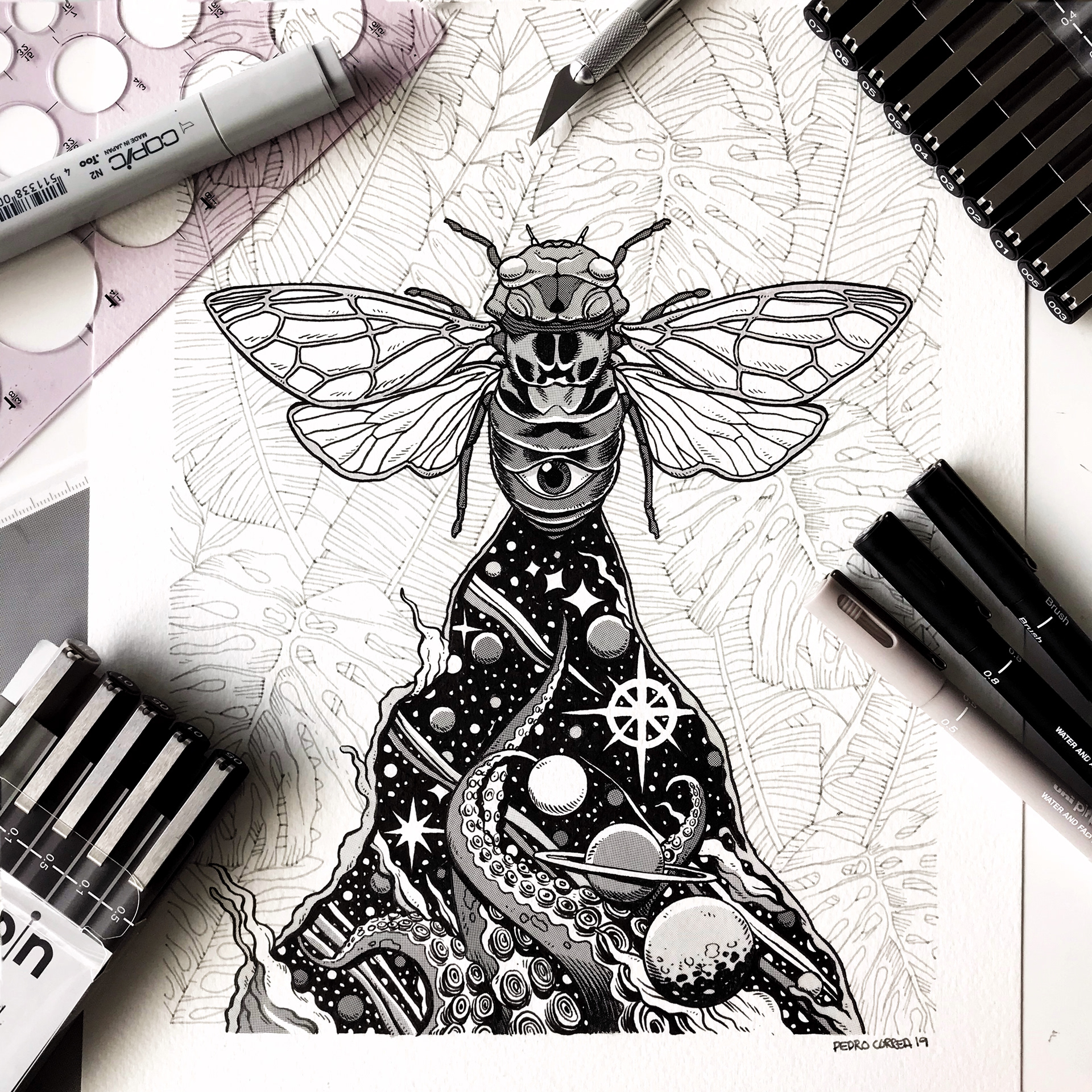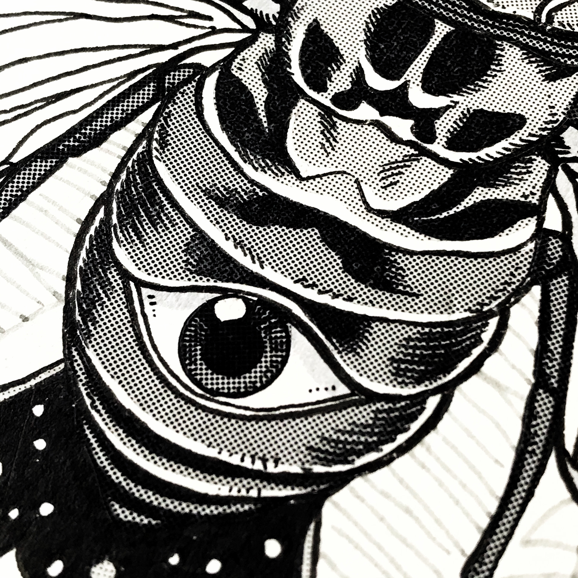Poster made for Jade Cicada (Skyler Golden), an electronic music producer from Denver, CO. Ink, screentones and markers over watercolor paper and colors and digital textures on Photoshop.