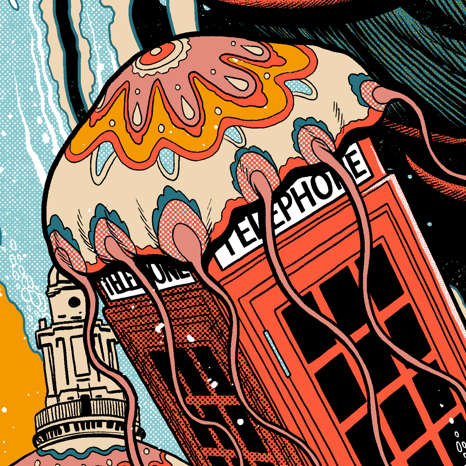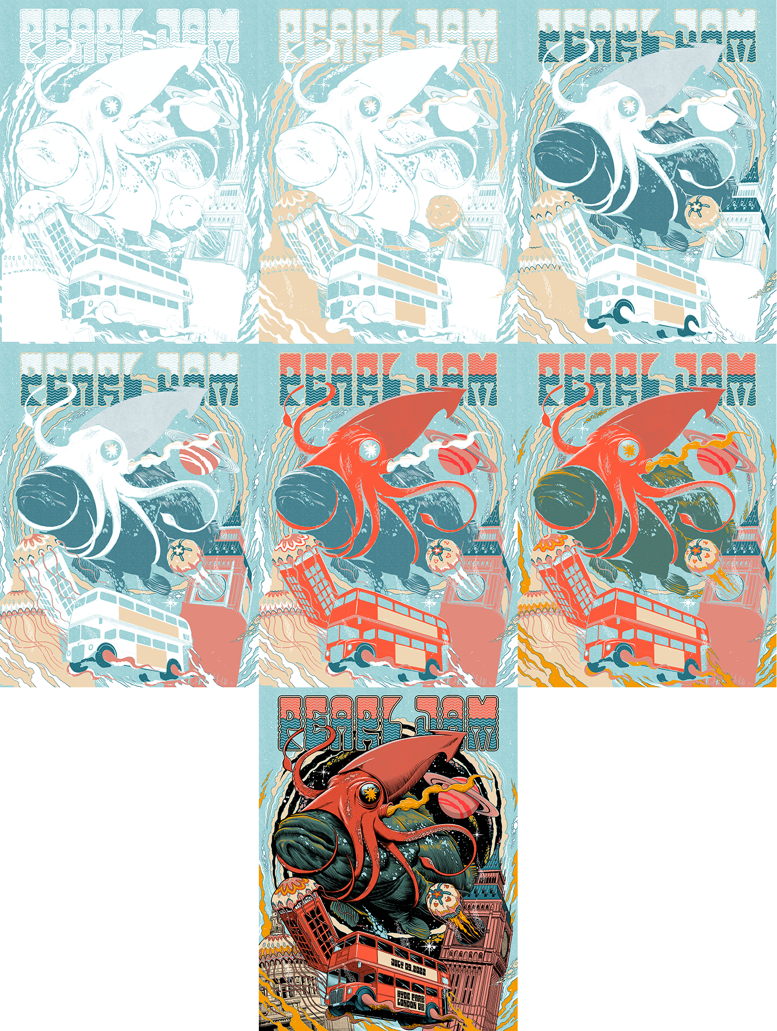 Illustration made for Peral Jam's European tour 2022 - Hyde Park, London, UK 07/09/2022. Digital illustration for screen printing process.