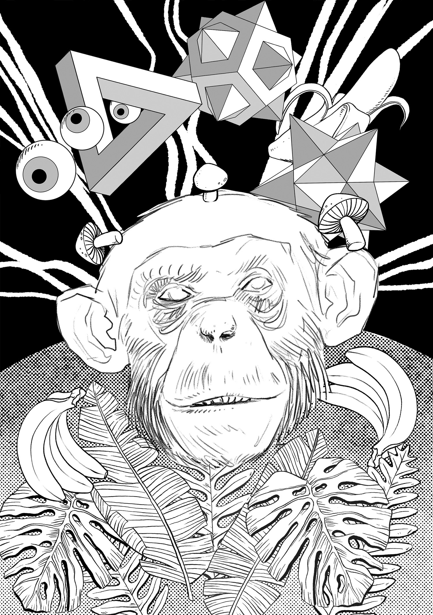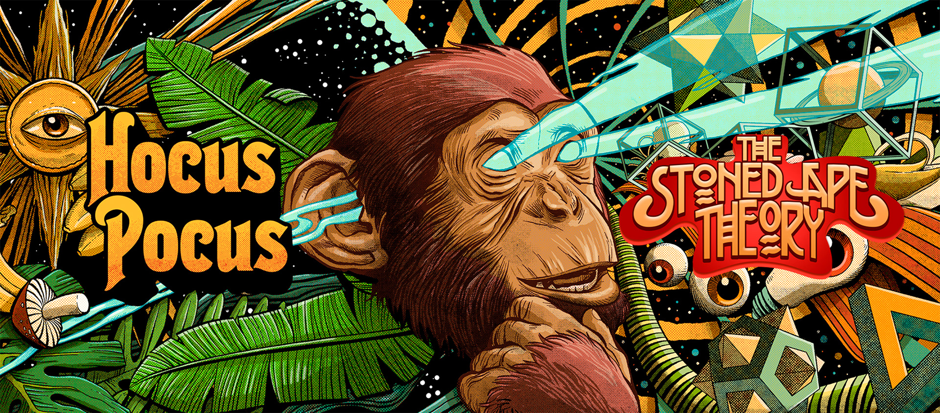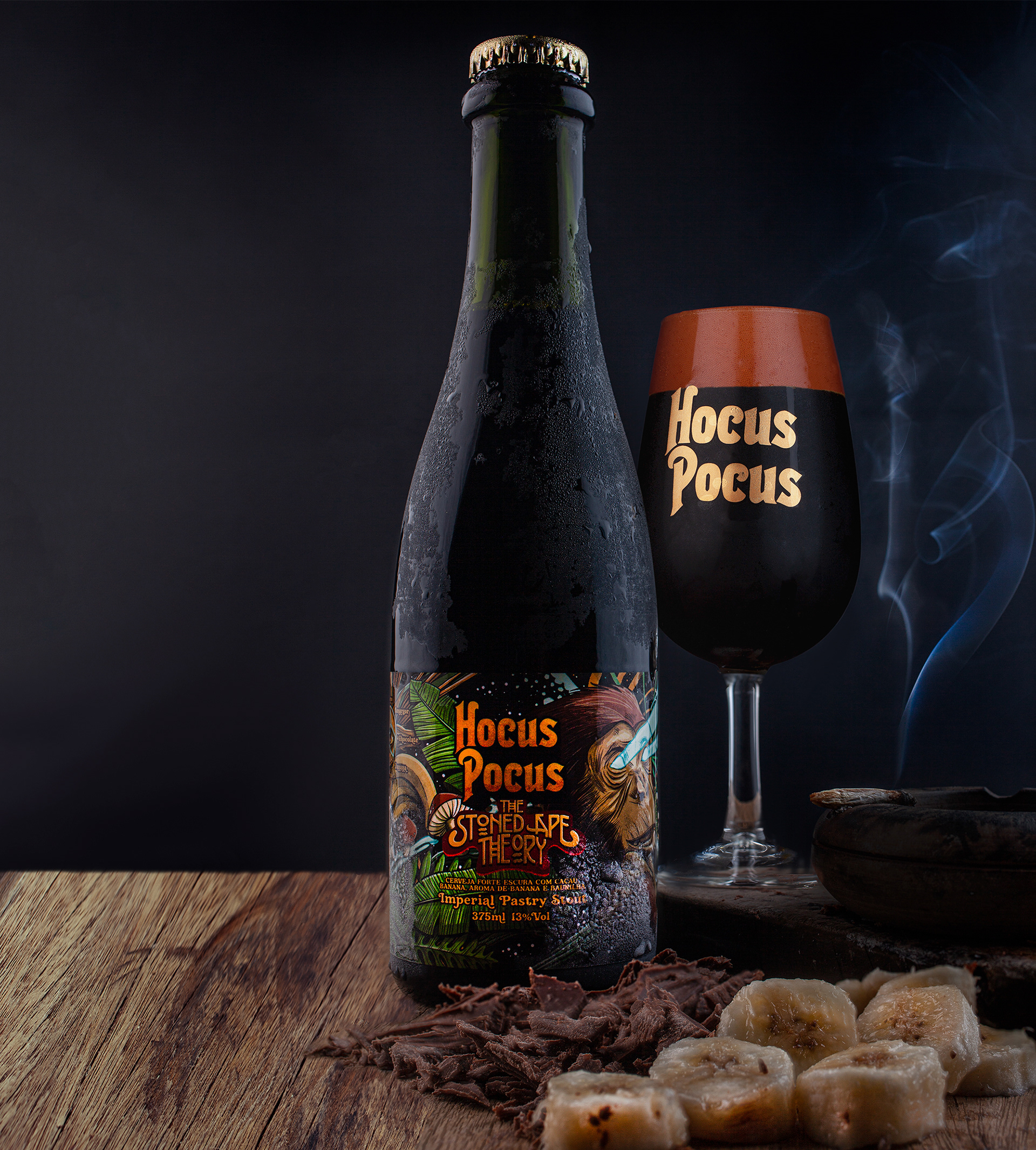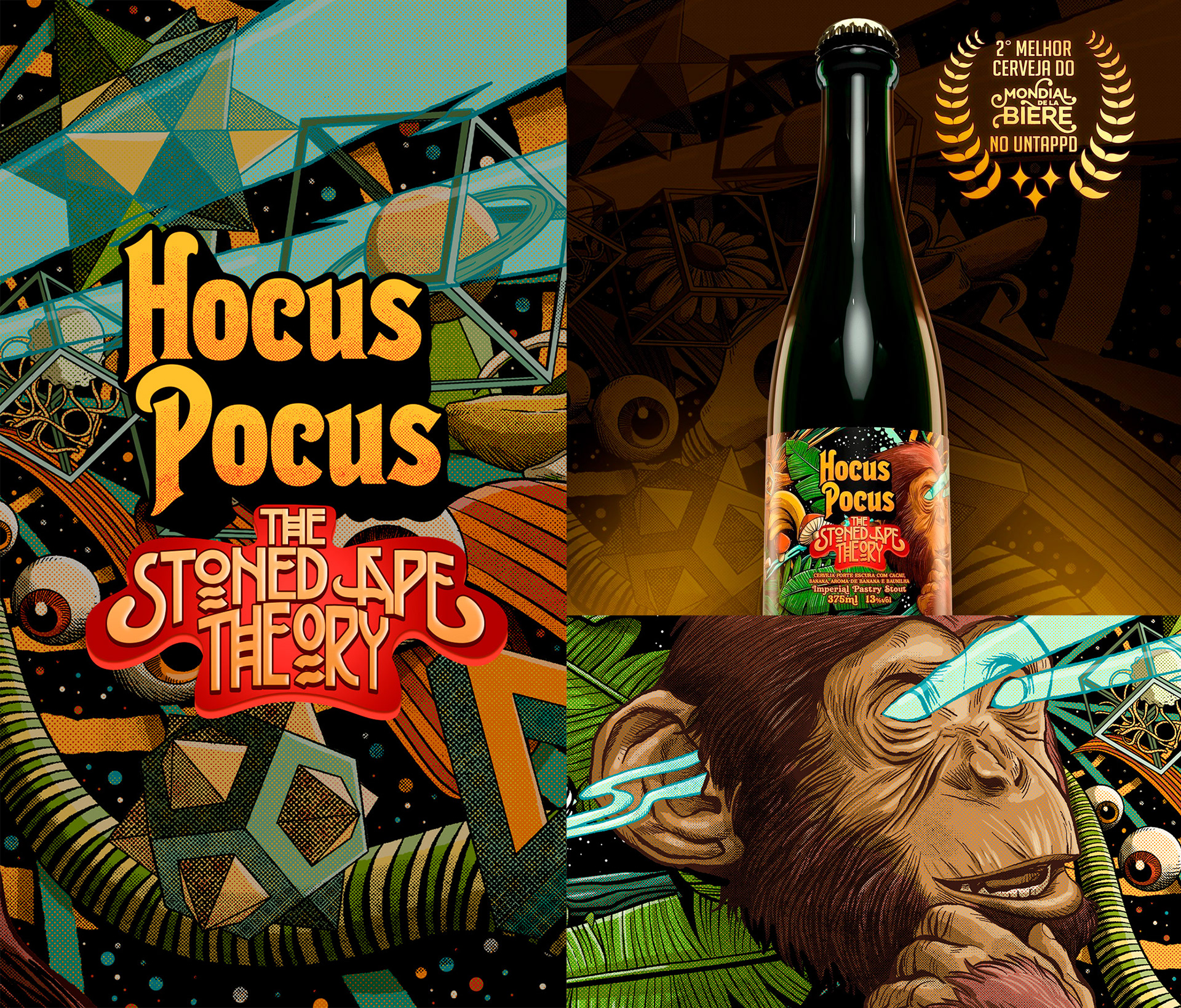 Packaging illustration made for Cervejaria Hocus Pocus - Rio de Janeiro, Brazil. The Stoned Ape Theory is an Imperial Pastry Stout with chocolate and banana and 13% alcohol content. Digital illustration made on Photoshop.