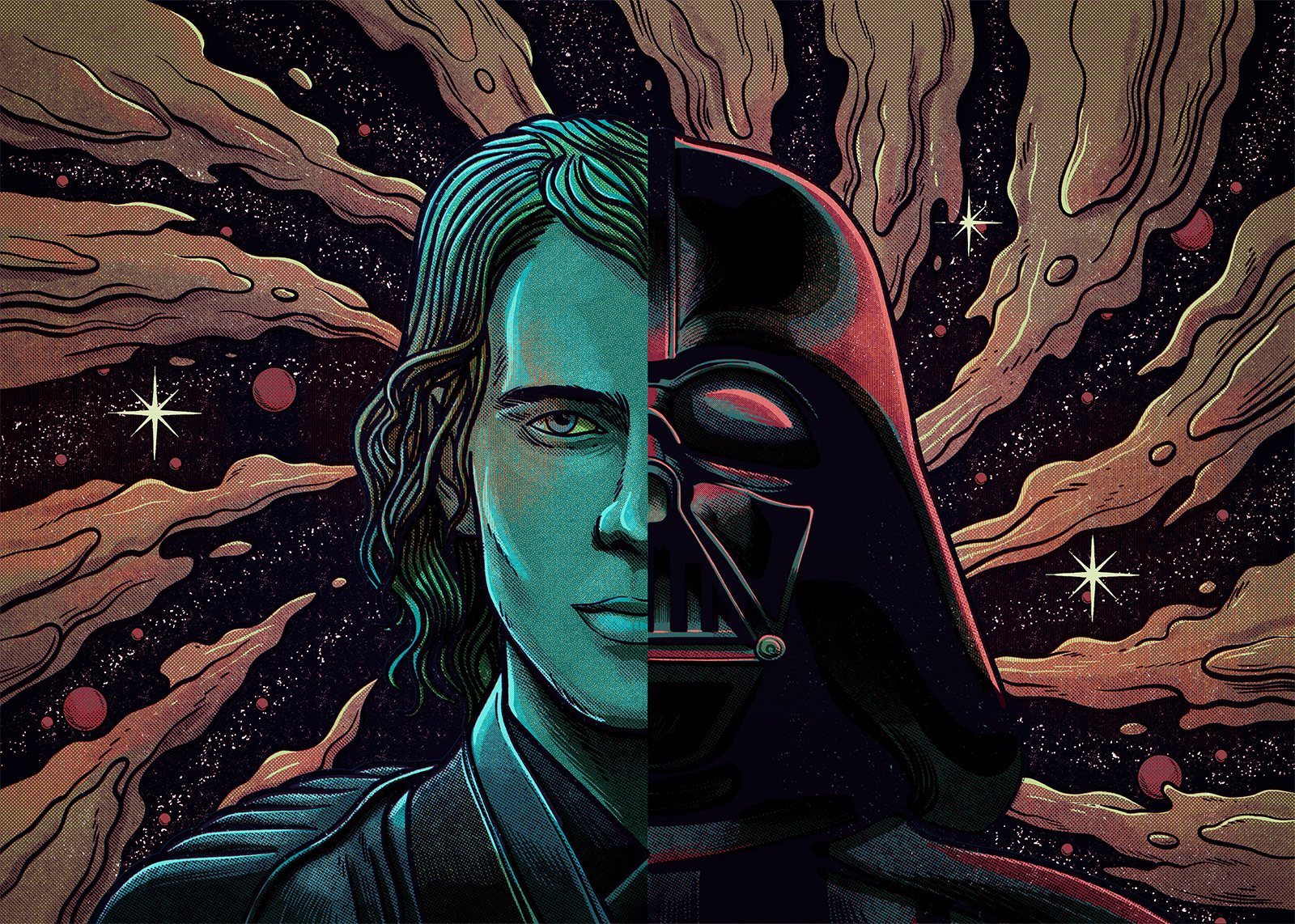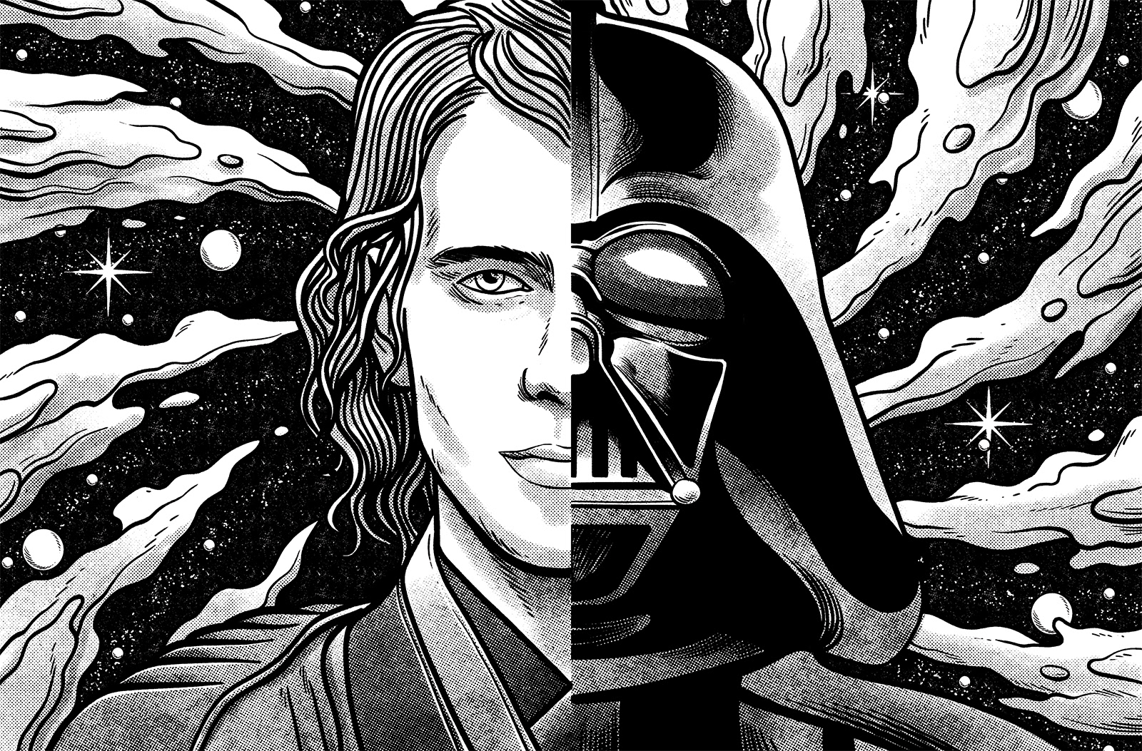 Illustrations made for Revista Superinteressante # 408. The reportage is about the villain's journey, explaining that no villain is born villain, they all have a journey that took them there. All illustrations made in Photoshop using True Grit Textures Supply brushes and textures.